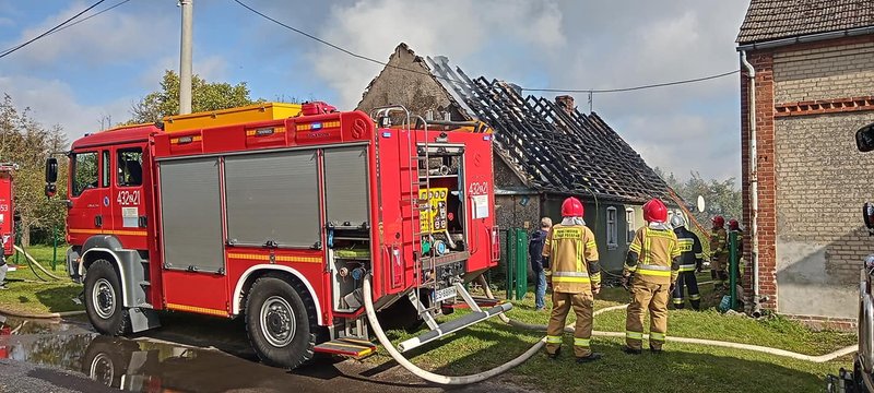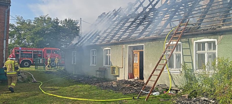 Ogień został ugaszony przez strażaków. Spaliła się jednak cała konstrukcja dachu oraz mieszkanie na parterze budynku.