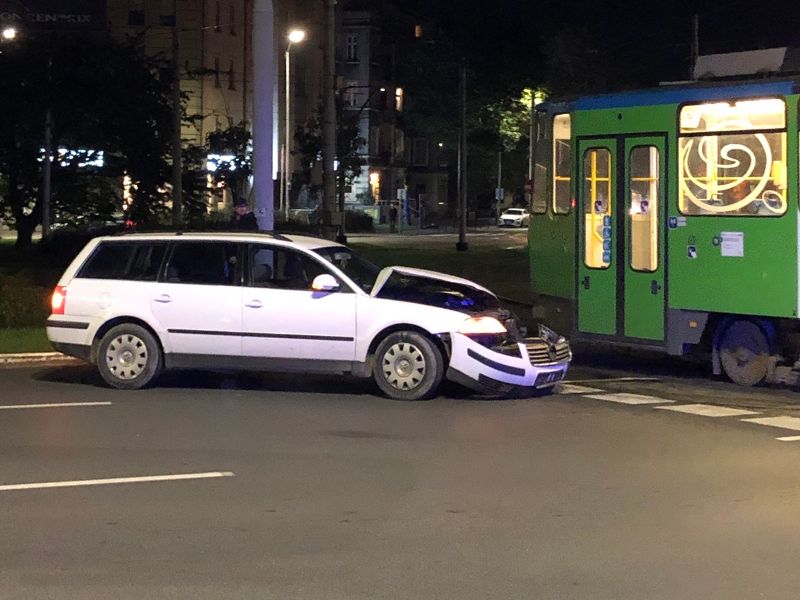 Auto osobowe zderzyło się z tramwajem linii 1. Do kolizji tej doszło w niedzielę (6 października) tuż przed godz. 22 na pl. Szarych Szeregów w Szczecinie.