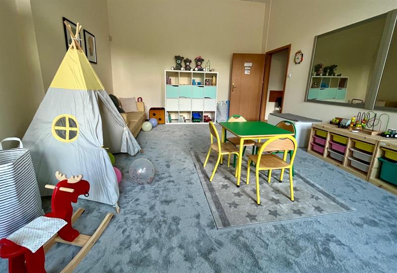 Ta sala, poza wyposażeniem i kolorystyką przyjaznymi dziecku, ma lustro weneckie, co daje możliwość zapewnienia poczucia intymności, dyskretnej obserwacji naturalnych zachowań nie tylko dziecka, ale też dorosłych, którzy chcą być jego rodzicami (taka obserwacja odbywa się za ich wiedzą).