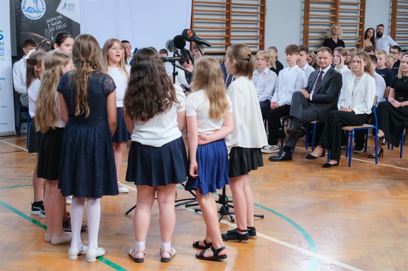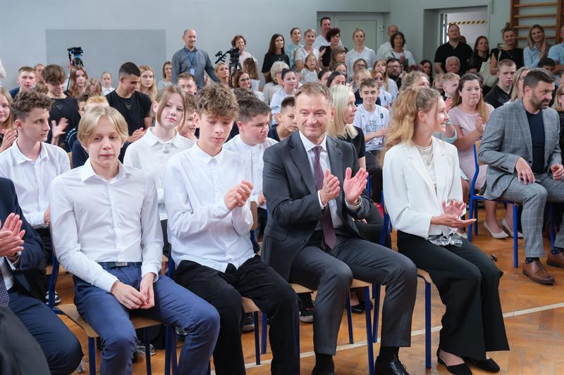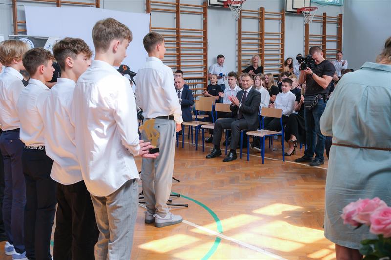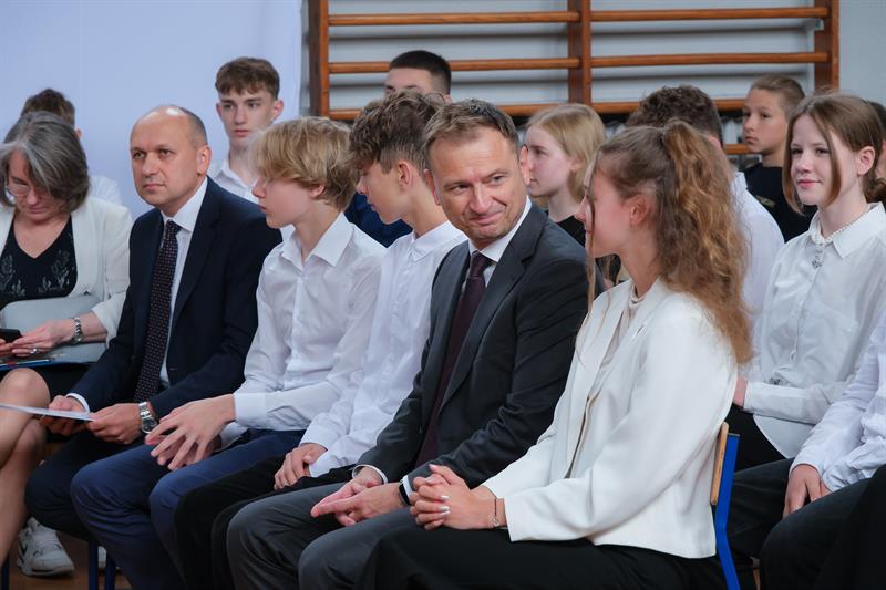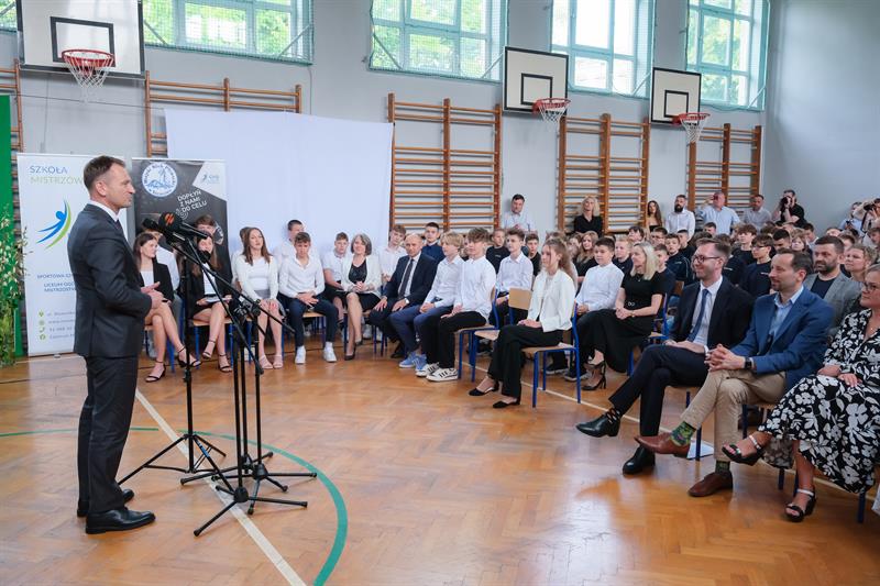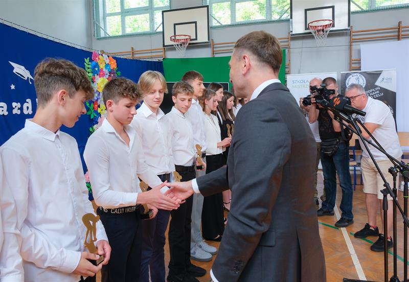 Sławomir Nitras gratulował uczniom wyników w nauce i samozaparcia w treningach.