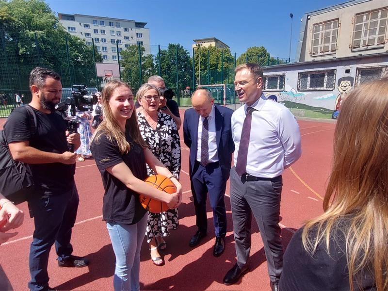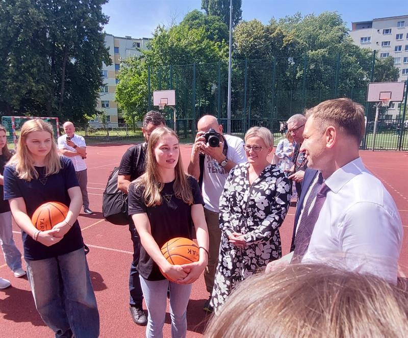 Uroczyste pożegnanie ośmioklasistów ze Sportowej Szkoły Podstawowej w Centrum Mistrzostwa Sportowego przy ul. Mazurskiej w Szczecinie zaszczycił obecnością Sławomir Nitras, Minister Sportu i Turystyki. Ostatni rok zakończyli tu młodzi ludzie świetnie radzący sobie w nauce, ale nade wszystko z wieloma osiągnięciami na sportowych arenach w województwie, kraju i za granicą. CMS od lat jest bowiem kuźnią talentów, szczególnie w pływaniu i boksie, ale także w innych dyscyplinach sportowych. Po oficjalnej uroczystości, w której nagrody i statuetki odebrali młodzi sportowcy z CMS, minister udał się z nimi na boisko, gdzie rozmów nie było końca. Sławomir Nitrasbrozegrał z młodzieżą także mini mecz w koszykówkę. Rzucał celnie, za dwa punkty.
