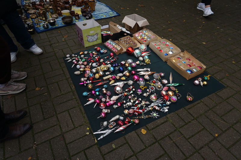Wśród oferowanego towaru widać było też akcenty świąteczne – przed nami Wszystkich Świętych i następnie Boże Narodzenie. Były więc wieńce i ozdoby choinkowe jak np. bombki i lampki choinkowe.