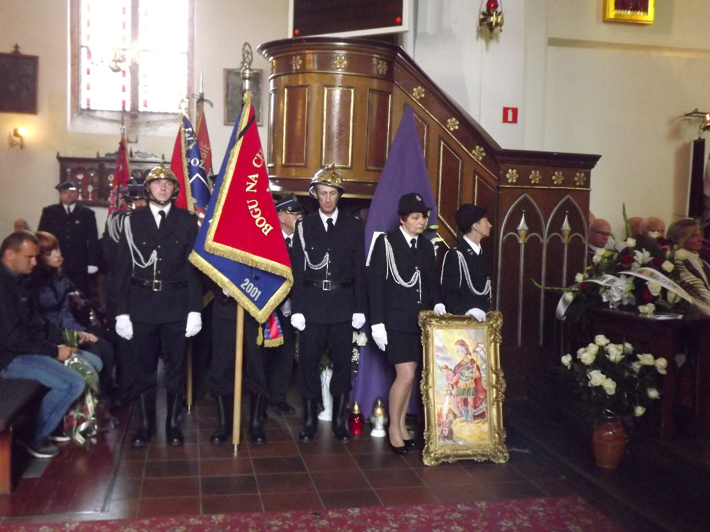 Wartę honorową przy trumnie zaciągnęli druhowie ze wszystkich jednostek OSP powiatu łobeskiego. Obecne były poczty sztandarowe strażaków, szkół i kół PZŁ.