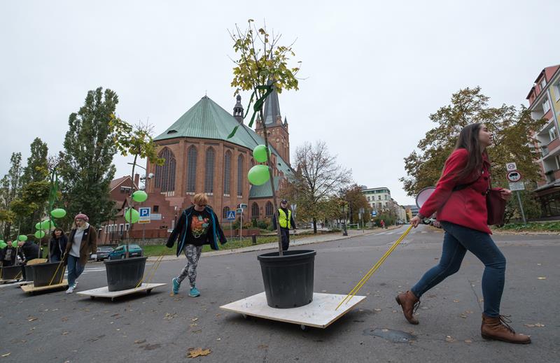 Wędrujące drzewa, to akcja Szczecińskiego Ruchu Miejskiego i Rady Osiedla Stare Miasto mająca na celu pokazanie, jak bardzo potrzebna jest zieleń w mieście.