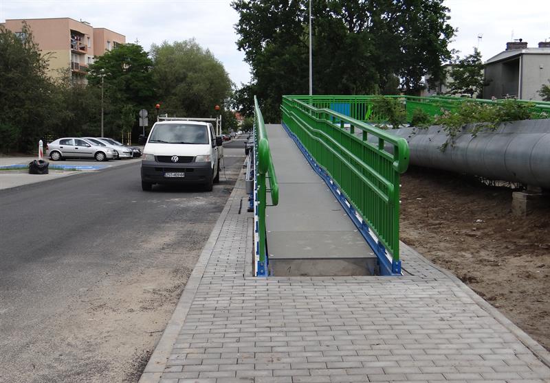 Kładka dla pieszych o nowej konstrukcji, która ustawiona została nad ciepłociągiem, ma teraz z obu stron podjazdy dla osób niepełnosprawnych. To teraz będzie spore ułatwienie i udogodnienie w poruszaniu się przez ten łącznk między osiedlem budynków wielorodzinnych a częścią o zabudowie willowej w tej części miasta, która przylega do ulic Chłopickiego, Dwernickiego, Somosierry oraz po części znajduje się także przy oddalonych nieco ulicach Reduty Ordona czy Czorsztyńskiej.