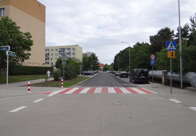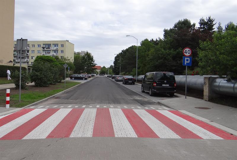 Po przebudowie pas jezdni nieco nieco węższy niż to było wcześniej. Po obu stronach, od budynków i w pasie przyległym do biegnącego wzdłuż niej ciepłociągu urządzone zostały zatoki z miejscami postojowymi. Na parkinach do parkowania prostopadle do jezdni wyznaczonych ich zostało 135 i 8 dla pojazdów osób niepełnosprawnych oraz około trzydziestu miejsc do parkowania równoległego. Na nowo wybudowane zostały dwie zatoki przystankowe dla autobusów miejskich. W rejonach skrzyżowań z przejściami dla pieszych jezdnie zostały wyniesione dla spowolnienia ruchu.