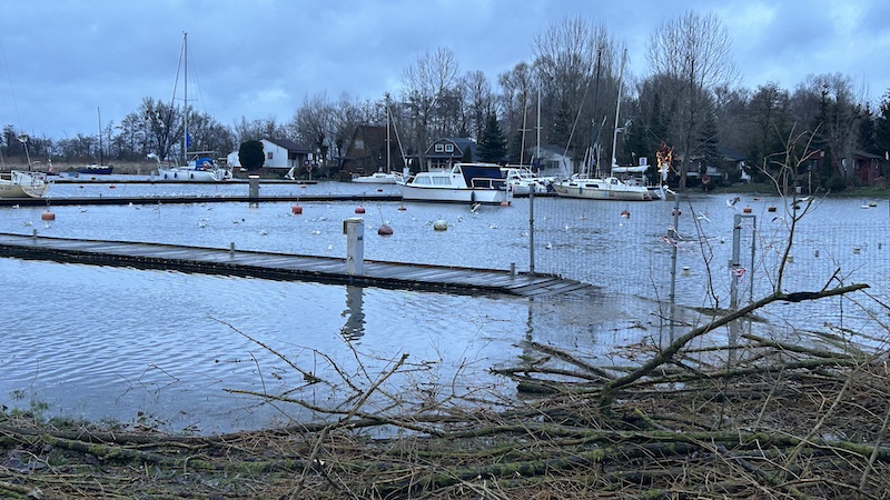Instytut Meteorologii i Gospodarki Wodnej wydał ostrzeżenie hydrologiczne trzeciego stopnia przed wezbraniem wód z przekroczeniem stanów alarmowych na Zalewie Szczecińskim i Ujściu Odry. W związku z wysokim stanem wód zalany został też odcinek DW nr 120, między Gryfinem a Mescherin.