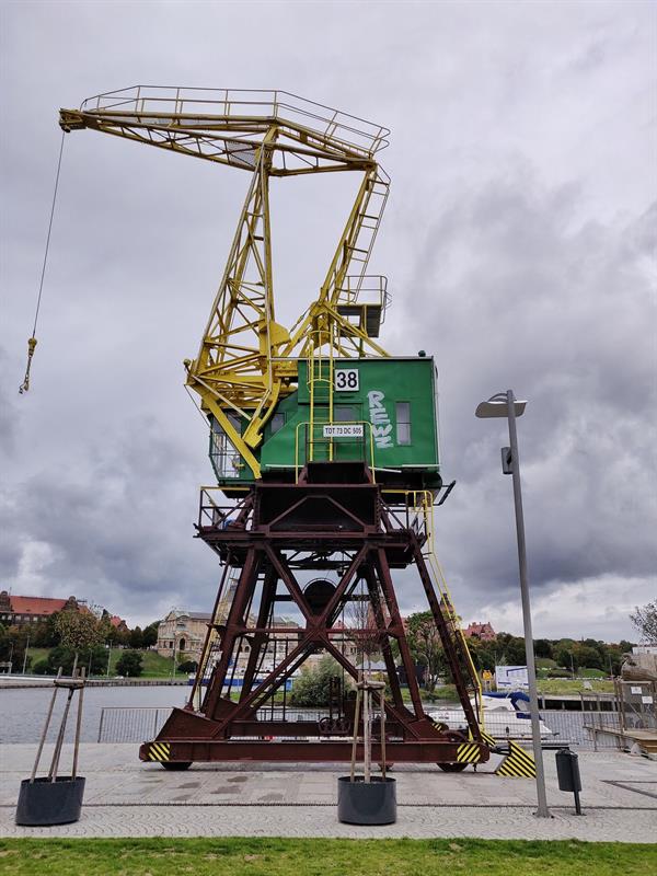 Jeden z odnowionych w 2017 roku szczecińskich dźwigozaurów został oszpecony przez pseudografficiarza. "Przykro nam, że praca nad przywróceniem blasku zabytku i symbolu Szczecina została tak bezmyślnie potraktowana" - czytamy na stronie Visit Szczecin.