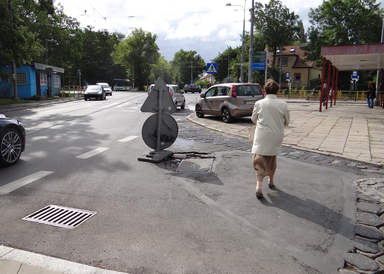 Chodników naprawy i wymiany, czy wylewania nowych odcinków nakładek na jezdniach szczeciński Zarząd Dróg i Transportu Miejskiego zleca tego lata nawet sporo. Nie ma tygodnia, by rzeczniczka prasowa tej jednostki budżetowej miasta nie rozsyłała mediom kolejnych komunikatów o kolejnych robotach na drogach i chodnikach. Szkoda, że z równą energią i skutecznością tenże ZDiTM nie jest w stanie sobie poradzić z pewną dziurą i zapadniętą pokrywą studzienki z instalacjami tuż na wjeździe dla autobusów całkiem niedaleko swej siedziby. Ta mieści się - przypomnijmy - przy ul. Klonowica. A dziura, o której mowa, od tygodni zastawiona jest tradycyjnie pachołem ze znakiem centralnie pośrodku zdewastowanego pasa dojazdu na pętli Krzekowo. Do pachoła - ku uciesze naiwnych - przytroczono znak ostrzegawczy o robotach drogowych. Tyle że tych ani słychu, ani widu.©℗