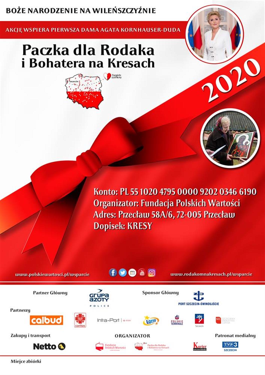 Tegoroczna akcja odbywa się w cieniu pandemii koronawirusa, jest więc nieco trudniejsza niż wcześniejsze, szczególnie jeśli chodzi o zbiórkę darów rzeczowych. Dlatego też organizatorzy – Fundacja Polskich Wartości – proszą o wpłaty gotówkowe na konto: PL 55 1020 4795 0000 9202 0346 6190, organizator: Fundacja Polskich Wartości, adres: Przecław 58A/6, 72-005 Przecław, dopisek: Kresy. Zebrane środki pozwolą na przygotowanie ok. 1500 paczek, które trafią do Polaków na Litwie, Łotwie i Białorusi.