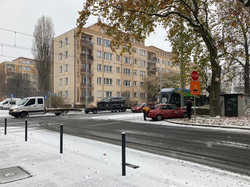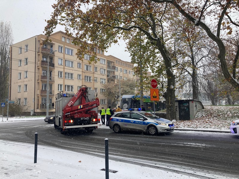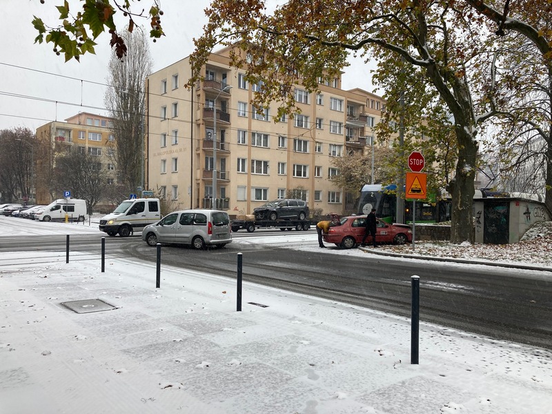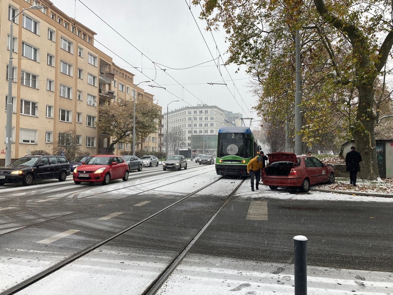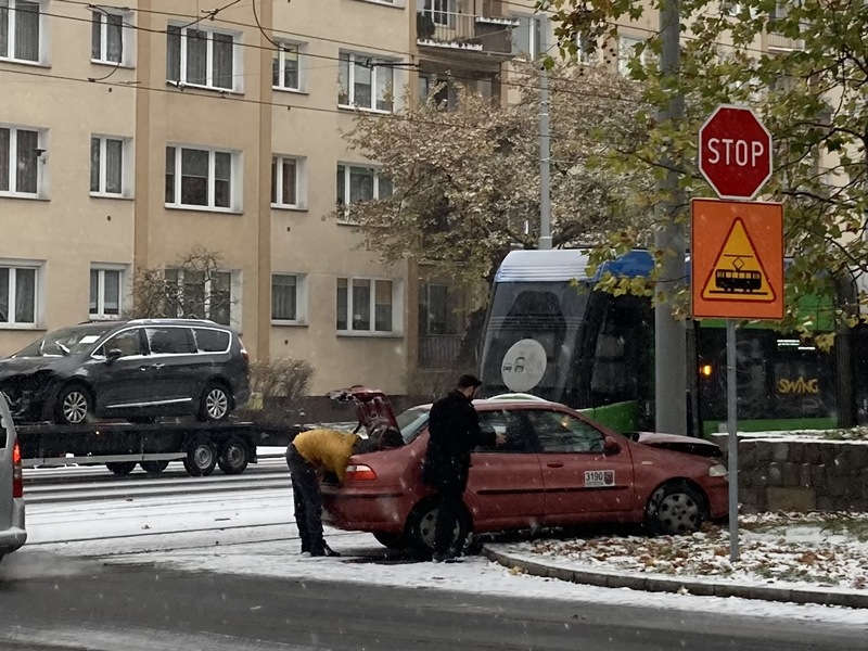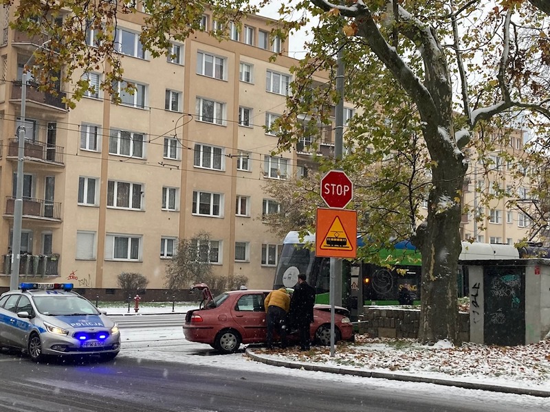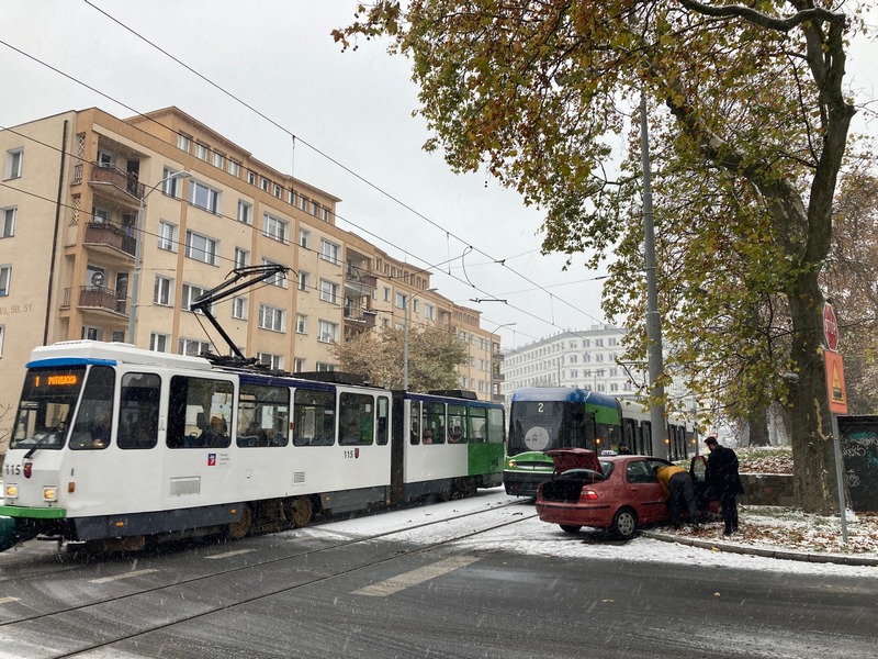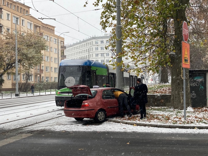 Padający śnieg powoduje znaczne utrudnienia na drogach. Dochodzi do kolizji. Na ul. Małopolskiej w Szczecinie doszło do zderzenia tramwaju linii nr 2 z taksówką. Na miejscu dwa zastępy straży pożarnej i pogotowie. Nie jeżdżą tramwaje linii 12 i 1.