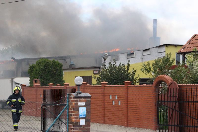 Ogień szybo rozprzestrzenił się po powierzchni całego dachu budynku. Sprzyjał temu silnie wiejący wiatr. Dlatego strażacy skoncentrowali się nie tylko na gaszeniu warsztatu, ale także na niedopuszczeniu ognia do sąsiadującego z nim budynku mieszkalnego.