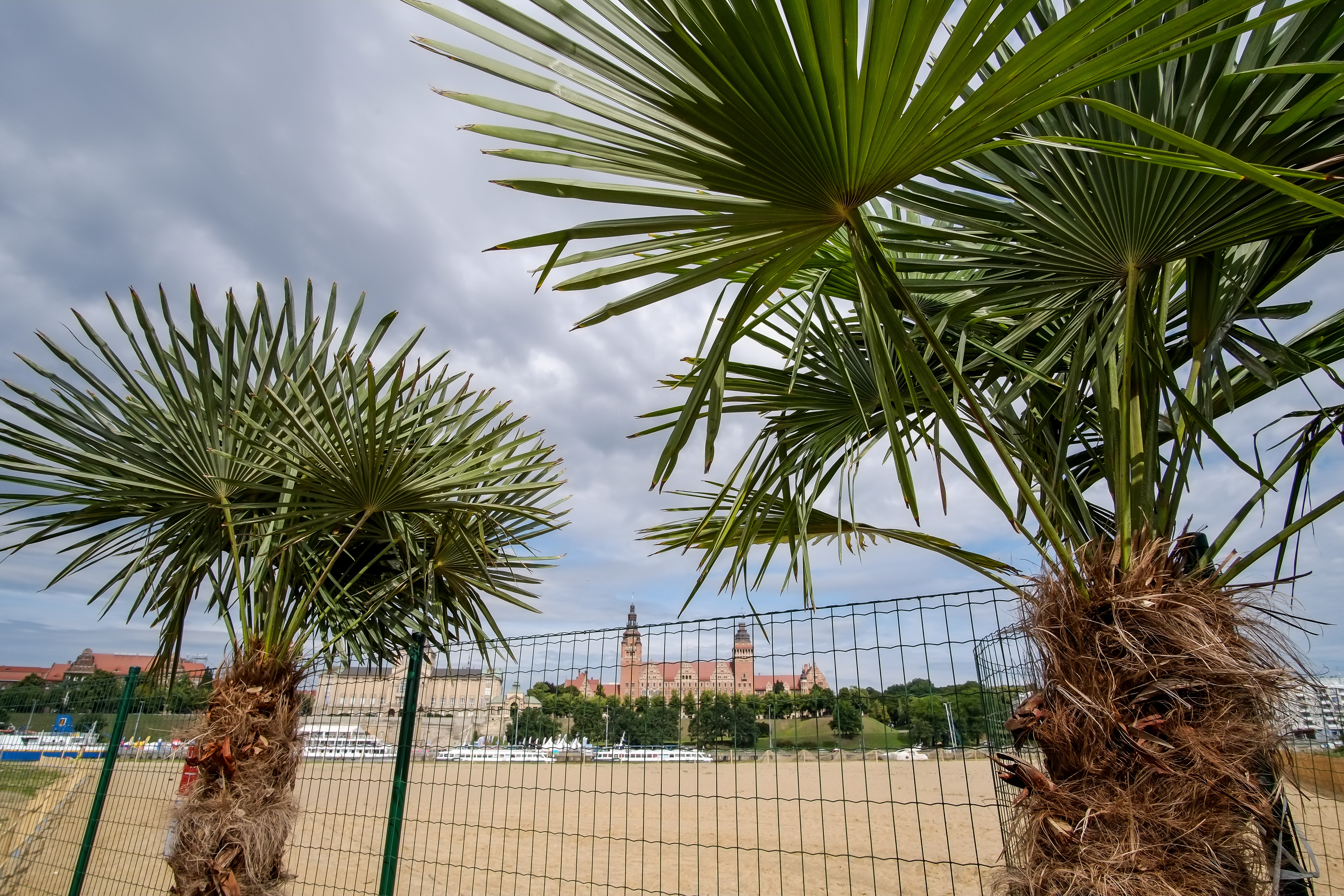 Palmy w donicach przy wejściu, sieci rybackie rozwieszone na ogrodzeniu - to niektóre elementy mające tworzyć plażowo-wakacyjny klimat. Wkrótce zacznie działać "Miejska strefa letnia", czyli zapowiadana plaża na Wyspie Grodzkiej w Szczecinie.