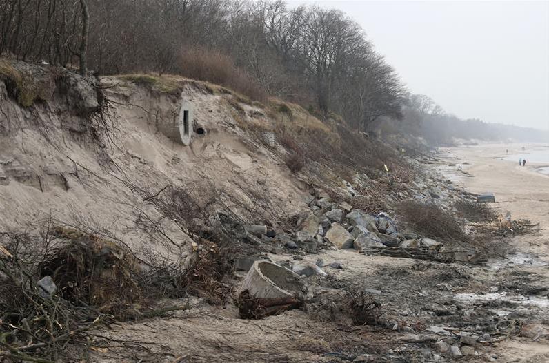 Orkan Axel, który nawiedził Polskę na początku stycznia, pozostawił po sobie wiele śladów. Zwłaszcza w pasie nadmorskim wyrządził sporo strat. Uszkodzonych zostało wiele elementów technicznej infrastruktury. Sztorm zabrał także część plaż. Tak stało się m.in. w zachodniej części Kołobrzegu, gdzie piętrzące się fale dotarły do wydm, odsłaniając ukryte w nich bunkry.