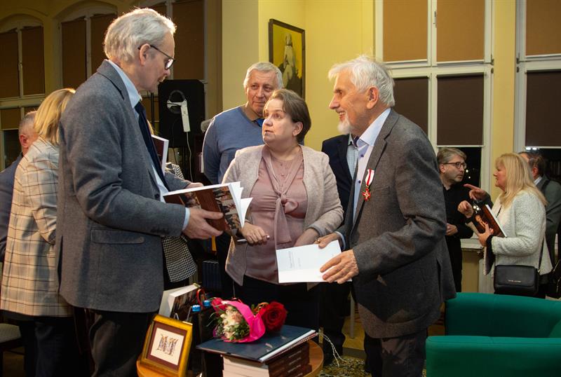 Dr Marek Tałasiewicz skończył w tym roku 80 lat. W czasie spotkania marszałek województwa Olgierd Geblewicz uhonorował go najwyższym wyróżnieniem regionalnym – Złotym Gryfem Zachodniopomorskim, dyrektor Książnicy Pomorskiej Przemysław Wraga – Złotym Exlibrisem, a dr Wojciech Łopuch – Złotym Inicjałem Szczecińskiego Towarzystwa Kultury. Sympatyczne spotkanie zakończyły urodzinowe życzenia, wystąpienia gości, wpisy do „Tabula Gratulatoria” i tort.