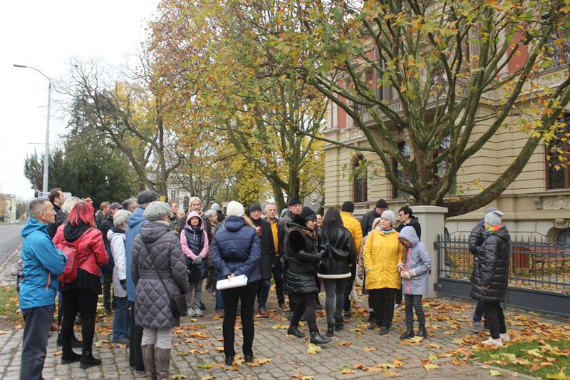 Uroczystości na cmentarzu poprzedził spacer krótkim fragmentem al. Wojska Polskiego wzdłuż budynków, które należały do rodziny. Początkowo były to budowle wyłącznie drewniane, bo tylko takie można było stawiać w bezpośrednim sąsiedztwie istniejącej jeszcze w 1870 r. Twierdzy Wilhelma. Zgodnie z obowiązującymi przepisami właściciel budowli w przypadku ataku wroga zobowiązany był taką budowlę spalić. Dopiero po likwidacji twierdzy zezwolono na stawianie budynków murowanych, w tym najsłynniejszej, w której mieszkał Johannes Quistorp, w której obecnie mieści się siedziba Wojewódzkiej Stacji Pogotowia Ratunkowego.
