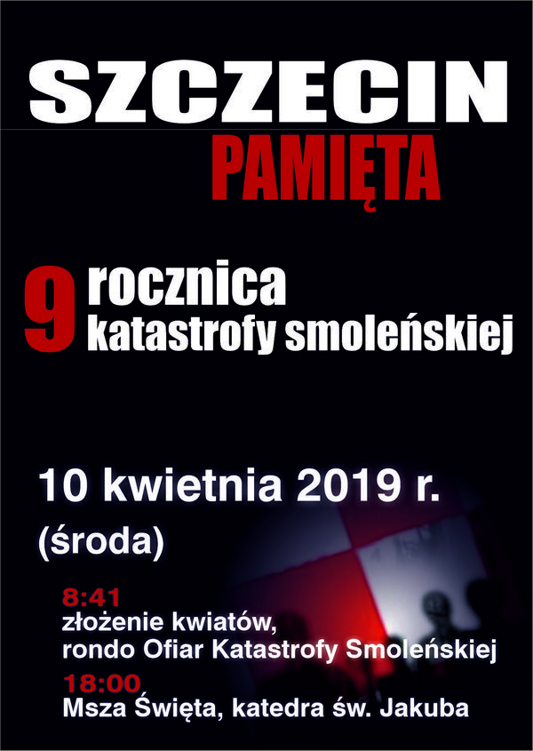 W środę (10 kwietnia), w 9. rocznicę katastrofy smoleńskiej, o godz. 8.41 na terenie całego województwa zachodniopomorskiego rozlegnie się sygnał syren alarmowych. W 2010 roku w katastrofie samolotu zginęło 96 osób – wśród nich para prezydencka, Lech i Maria Kaczyńscy.