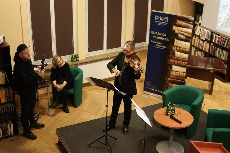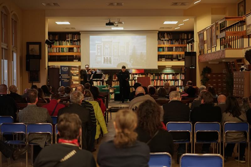 Następnie, w sali im. Zbigniewa Herberta w Książnicy Pomorskiej, rozpoczęto spotkanie – goście mogli obejrzeć wystawę pt. „Obecność nieobecnych”. Zaprezentowano na niej zdjęcia Żydów ze Szczecina, dokumenty archiwalne, kenkarty. Aktorka Anna Gielarowska i skrzypek Misza Tsebrij zaprezentowali spektakl „Przywracani pamięci”. Aktorka czytała fragmenty relacji ocalonych z Holokaustu, jak i utwory poetyckie m.in. Tadeusza Różewicza czy Jerzego Ficowskiego. Cykl wykładów zainicjowało wystąpienie prof. Eryka Krasuckiego z Instytutu Historycznego Uniwersytetu Szczecińskiego. Historyk wygłosił wykład pt. „Jak do tego doszło? Deportacja Żydów ze Szczecina i jej pokłosie”. Opowiedział o ustaleniach badaczy na temat przyczyn decyzji o wysłaniu ludności żydowskiej do Generalnego Gubernatorstwa, przedstawił także biografie ocalonych z Holokaustu. Profesor Paweł Gut omówił zasoby archiwalne do historii szczecińskich Żydów znajdujące się w Archiwum Państwowym w Szczecinie, ze szczególnym uwzględnieniem kennkart. Natomiast Zygmunt Cywiński zaprezentował miejsca deportacji Żydów szczecińskich znajdujące się na Lubelszczyźnie i ich stan obecnie. Jego ustalenia są wynikiem wyjazdów i badań prowadzonych w tamtym rejonie.