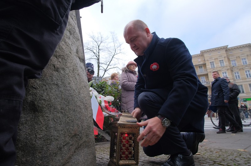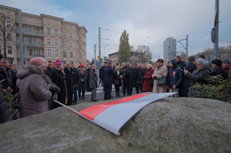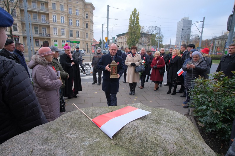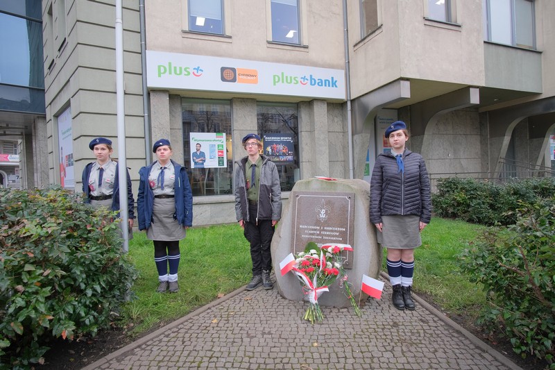 W poniedziałek (11 listopada) kwiaty złożono także przy Kamieniu Pamięci Harcerzy Szarych Szeregów. Wśród upamiętniających byli m.in. samorządowcy i parlamentarzyści.