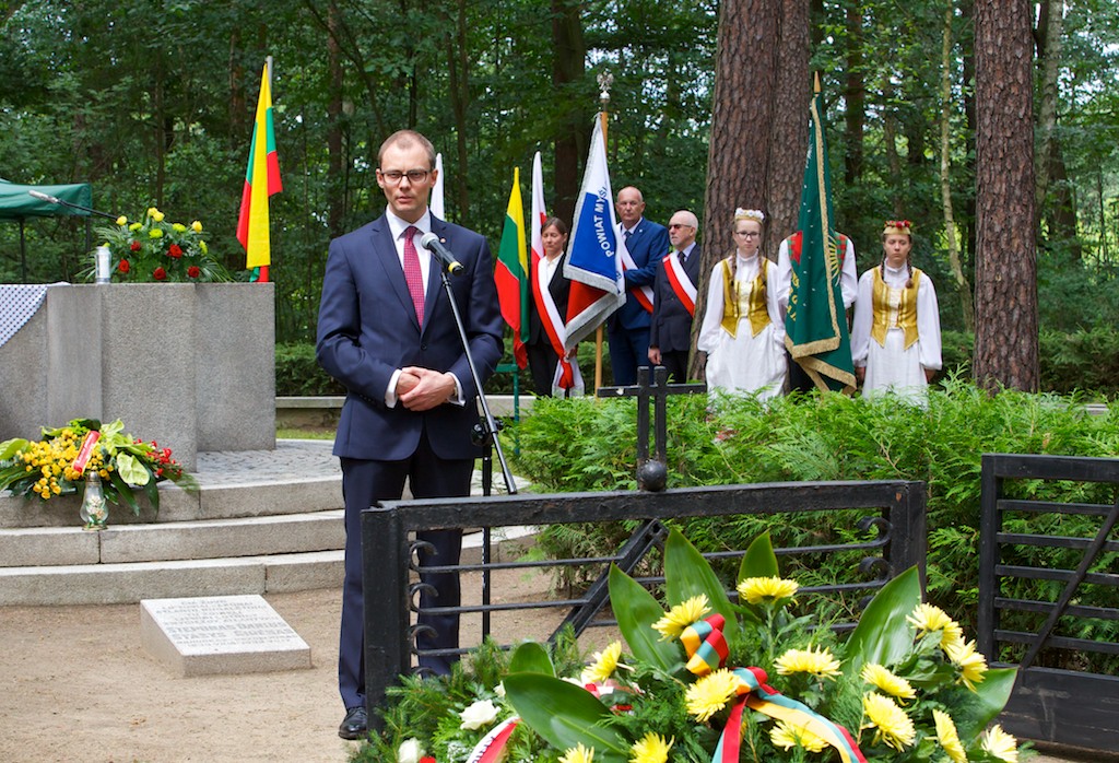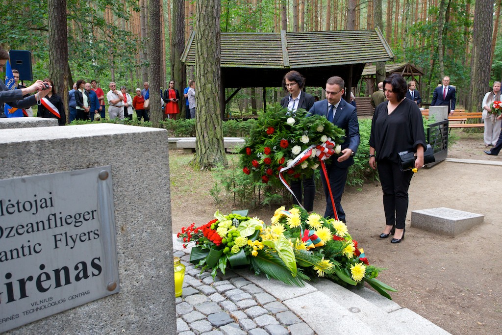 Z kolei wiceminister Litwy podkreślił, że to wielki heroiczny wyczyn dwóch pilotów, którym nie dane było powrócić na ojczystą ziemię. Jest też bohaterskim przykładem łączącym oba nasze narody. W obecnej sytuacji w Europie apelował o jedność narodów. Zaznaczył także, aby więcej Litwy było w Polsce i Polski na Litwie. Ponadto podziękował za pamięć i opiekę tego miejsca.