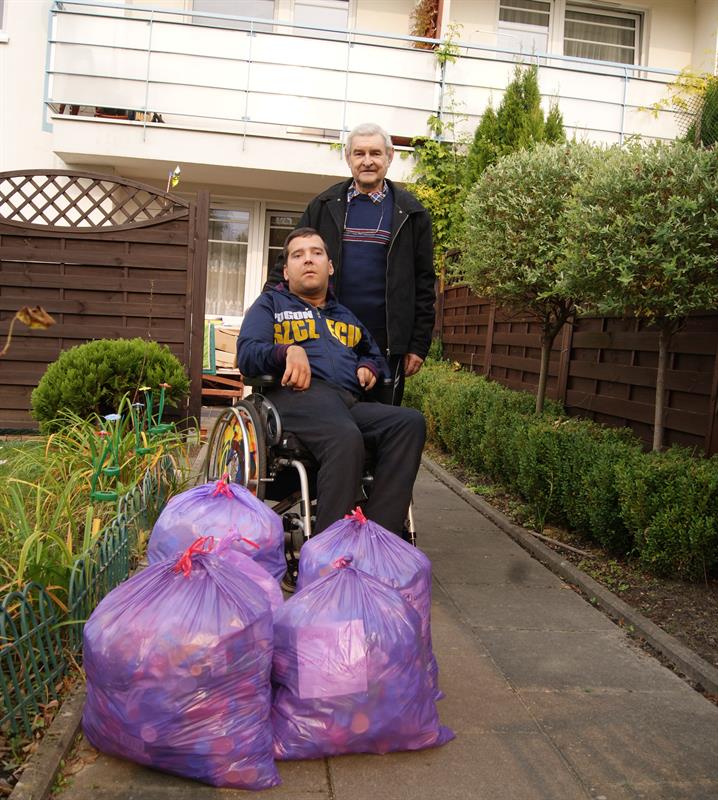 Ich znajomość zaczęła się w lutym 2016 roku. Pan Cezary w swoim garażu zebrał większą ilość plastikowych nakrętek i w dniu swoich urodzin postanowił je przekazać komuś potrzebującemu. Tak trafił na Adriana – chłopaka na wózku, który w dzieciństwie uległ bardzo poważnemu wypadkowi i od tego czasu wymaga ciągłej i intensywnej rehabilitacji oraz sprzętu, których koszt jest bardzo wysoki. 28-letniego Adriana wspierają różne osoby i środowiska, bo potrzeby są ciągle duże.