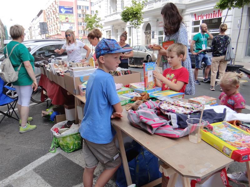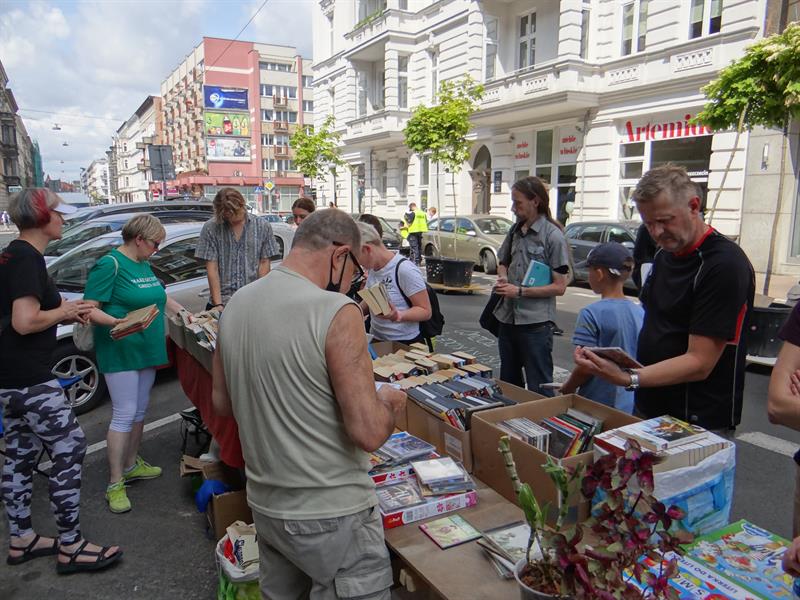 - Bawimy się przy dobrej muzyce w duchu zero waste. Zorganizowaliśmy wielką wymianę: ciuchów, gier, książek, roślin, winyli, zabawek. Przetwarzamy nie wyrzucamy. Dzielimy się nie niszczymy. Zabawie towarzyszą warsztaty z przesłaniem ekologicznym, organizowane przez Lidkę Piecak i niezawodną reprezentację ŚRODKA Śródmiejskiego Punktu Sąsiedzkiego: Adę Krawczak i Paulinę Stok-Stocką. A nasze drzewa stoją w jednym z tych miejsc, w jakim zieleni najbardziej brakuje , a jej deficyt jest najbardziej odczuwalny - opowiadał Piotr Czypicki, lider Szczecińskiego Ruchu Miejskiego i współorganizator sobotniego szczecińskiego Święta Ulicy.
