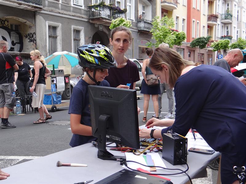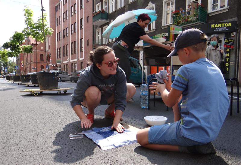 Szczecinianie świetnie się bawią podczas kolejnych wydarzeń z cyklu Święto Ulicy (Street Day). Tym razem - na ul. Jagiellońskiej, gdzie też na kilka tygodni zacumowały „Wędrujące drzewa". Fot. Mirosław WINCONEK
