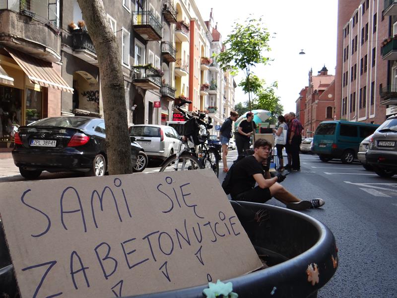 jedyne co jest w Szczecinie odhumanizowane to rządzący i miejscy aktywiści. 150 m od tego straganu jest park przy ulicy Wojciecha i każdy spragniony zieleni może tam bez trudu dotrzeć To samo w każdą inną stronę świata, po ok 50 metrach dreptania można dotrzeć do zielonej Śląskiej, placu Grunwaldzkiego, czy placu Lotników. Tak samo z Łokietka po 100 metrach w każdą stronę mamy park, albo naprzeciw budynku starej chemii, albo na Kopernika. Ile wyniosło dofinansowanie na tą hucpę ?