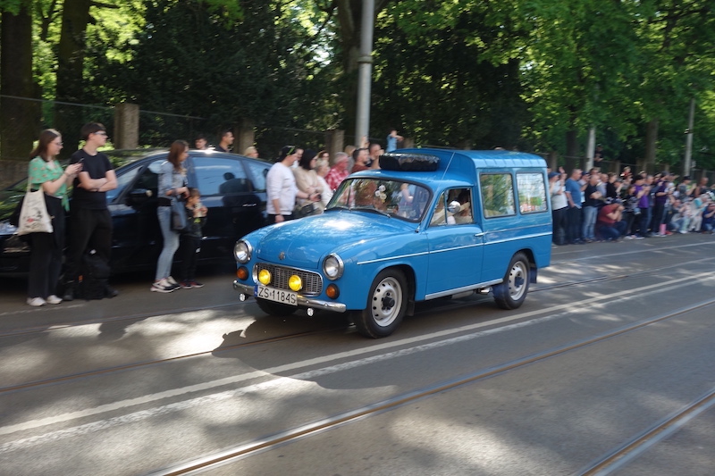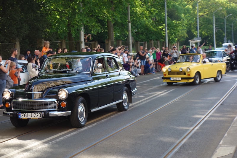 Uroczysty przejazd otwierał muzealny „Stoewer”. Za nim jechały pojazdy różnego typu i przeznaczenia. Nie zabrakło kolekcjonerskich motocykli takich marek jak „Junak”, „Panonia” i „MZ”. Pojazdy przyszły oglądać tłumy zwiedzających. Przed startem wszyscy czekali na dziedzińcu Muzeum Techniki. Słychać było fachowe rozmowy i liczne wspomnienia w rodzaju O, zobacz! Takim poldkiem jeździł porucznik Borewicz! To pan Michał Plewiński z Gumieniec opowiadał wnukowi historię samochodu marki „Polonez” i jego związków z dzielnym porucznikiem Borewiczem – serialowym funkcjonariuszem Milicji Obywatelskiej. „Stoewer” Greif był niewątpliwą gwiazdą parady pojazdów. Ale i takie modele jak Citroen 2 CV, Trabant 601 czy pięknie utrzymana Syrena Bosto budziły sporą sensację. ©℗