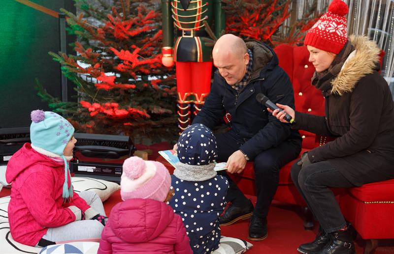 Nikt nie zauważył obecności na jarmarku Jego Ekscelencji Prezydenta Piotra Krzystka który czyta dzieciom bajki o Rewolucji Torowej i o technicznym otwarciu Alei Wojska Polskiego.