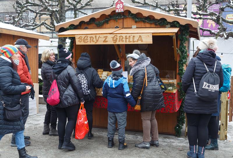 Właściwie po co ten jarmark , zimno , śnieżnie. Wejdę do Kaskady , ciepło , ceny przystępne.