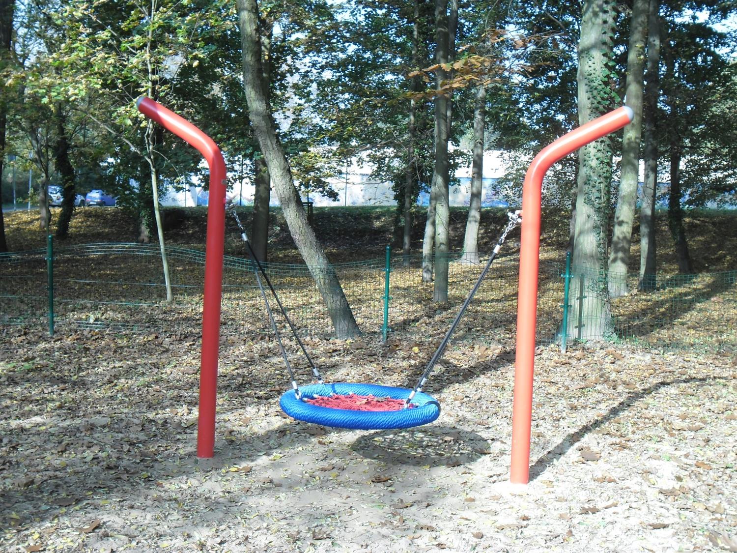 Teraz urządzeń dla najmłodszych jest więcej. Mogą dodatkowo korzystać z huśtawek: dwuosobowej i „bocianiego gniazda”, gry w kółko i krzyżyk, piramidy linowej, stołu do gry w chińczyka. Ustawione zostały też dwie dodatkowe ławki.