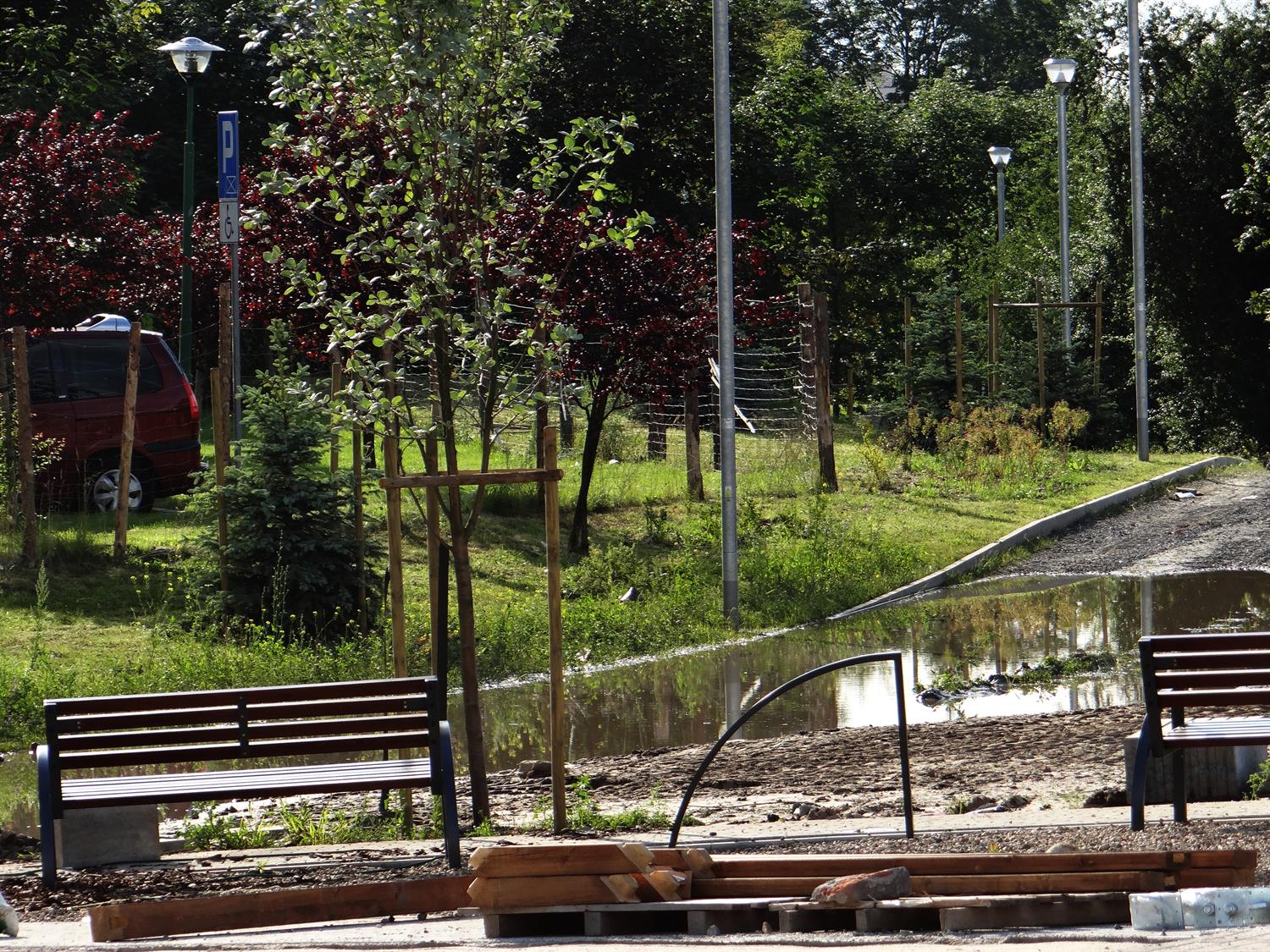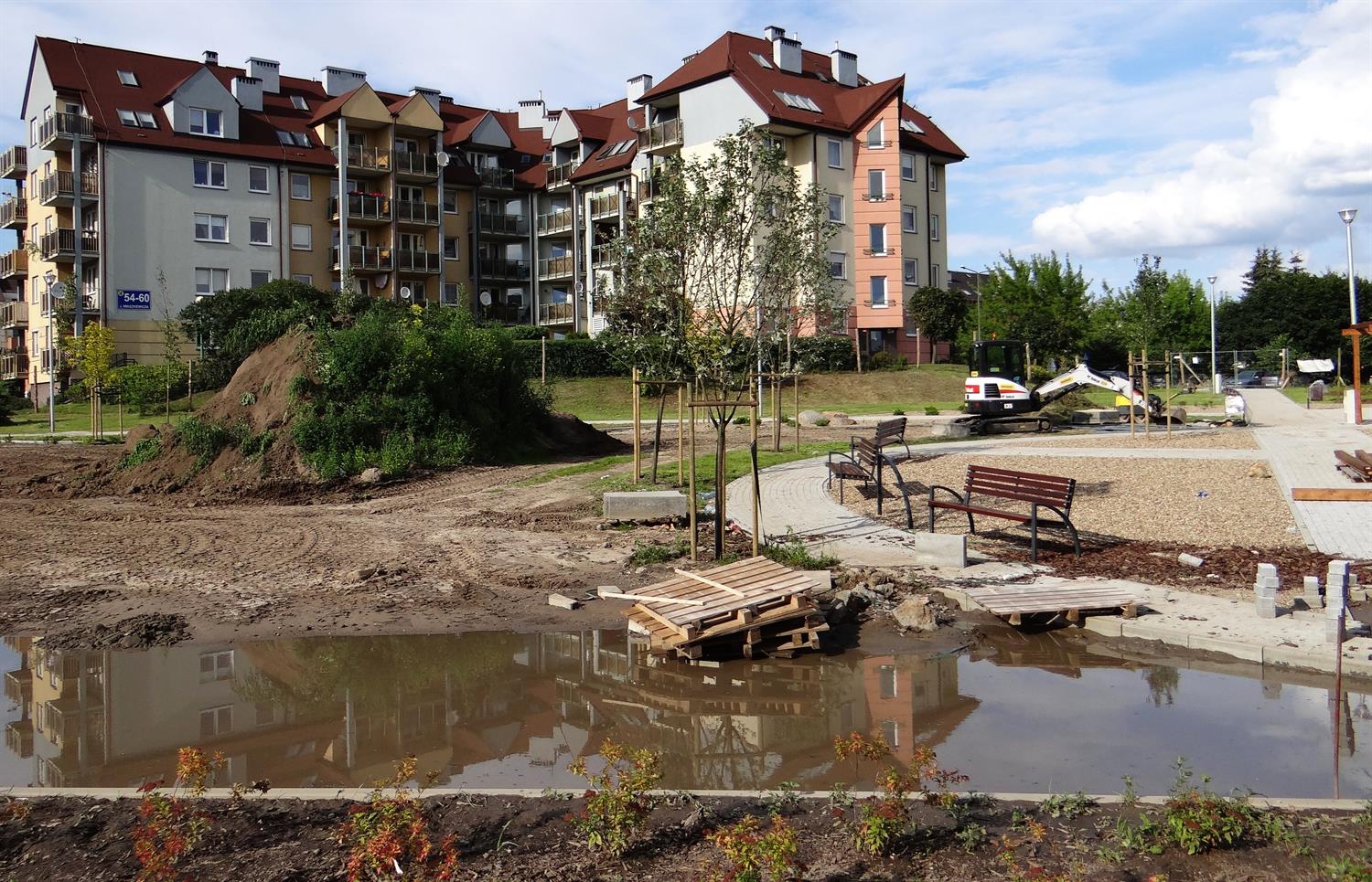 Takich deszczy jak w czerwcu/lipcu to nie pamietam od lat ,wiec trudno zeby miec na to jakikolwiek wplyw, albo planowac inwestycje dopiero jak bedzie sucho przez miesiac, tak sie nie da ,wiec malktoenci tu nie marudzcie ,wszystko bedzie oddane zgodnie z planem,cieszcie sie ze cos w ogole sie dzieje, choc pewnie wiekszosc Januszy-nosaczy wolalaby tam parking zabetonowany, i zadnych drzew itd.