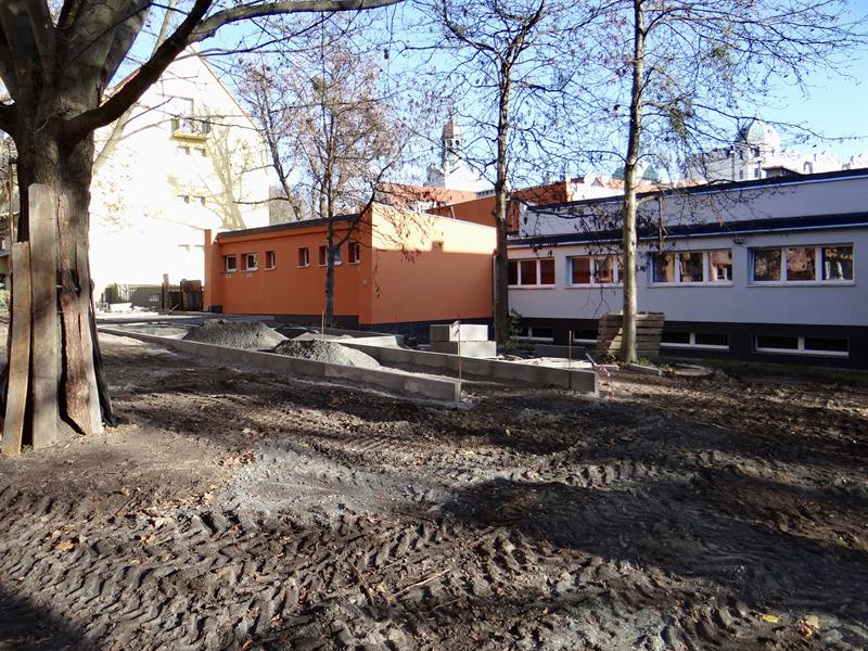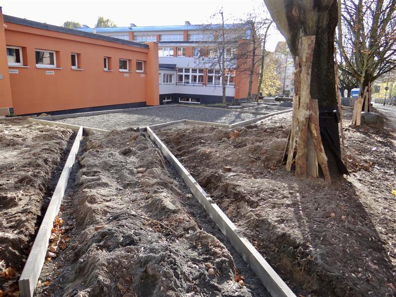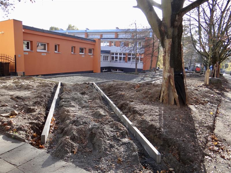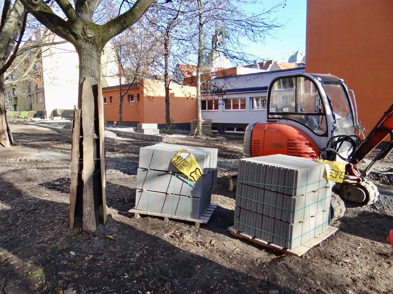 Już widać, gdzie staną ławki i pergola, po której będzie się pięło dzikie wino (winobluszcz pięcioklapkowy). Tak powstaje pierwszy tzw. park kieszonkowy Starego Miasta w Szczecinie. Fot. Mirosław WINCONEK