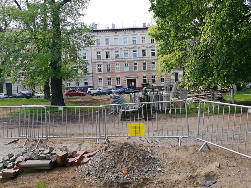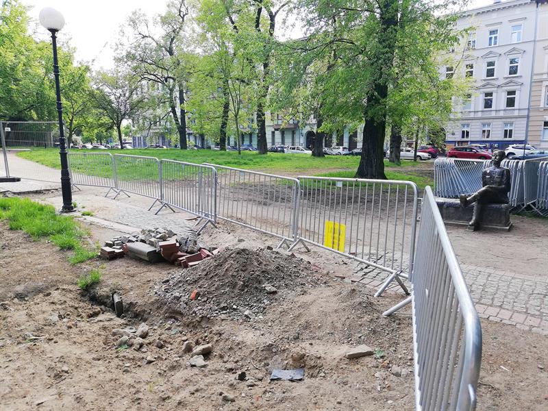 Na zdjęciu: Głębokie wykopy w bliskości wiekowych drzew trwały przez miesiąc. Odsłaniały nie tylko ich korzenie, ale też ceglane ślady przeszłości tego miejsca: glacis starych fortyfikacji Narożnika IV Fortu Wilhelma. Jak widać, część parku Andersa nadal pozostaje zapleczem budowy.
