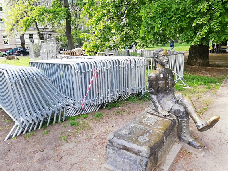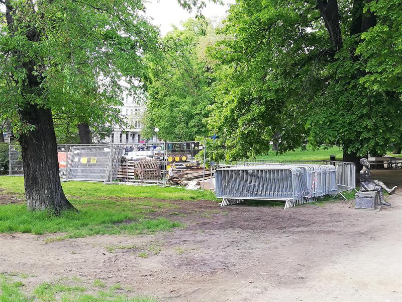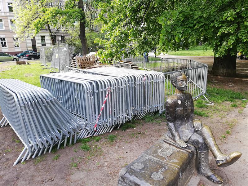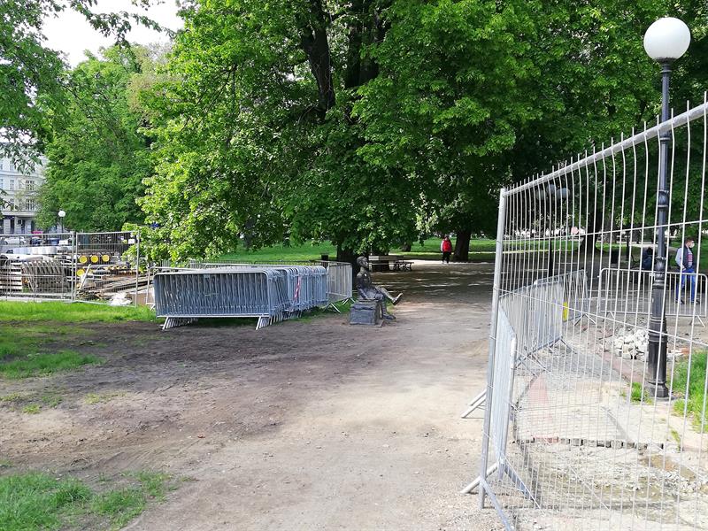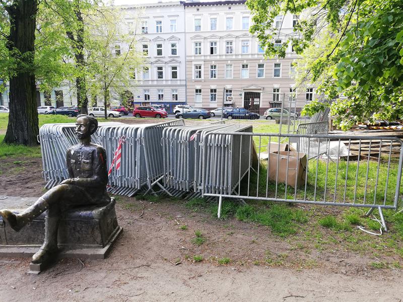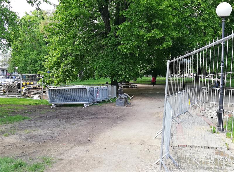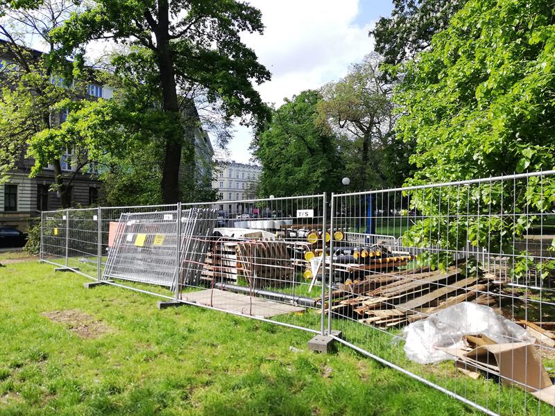 Montaż parkowego odcinka sieci centralnego ogrzewania już zakończono. Głębokie doły zasypano. Jednak budowlane zaplecze - jak widać - nadal nie zniknęło zza pomnika-ławeczki szczecińskiego podróżnika Jana Czekanowskiego, zasłużonego w badaniach Afryki antropologa i etnografa. Sporo czasu zajmie niwelowanie skutków inwestycji, która zmieniła znaczącą część parku w plac budowy. ©℗