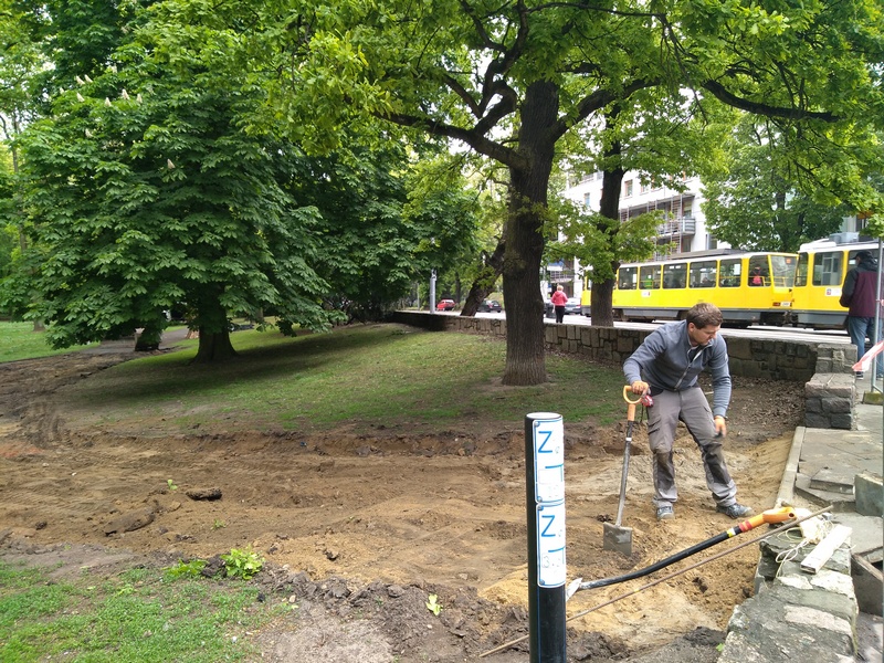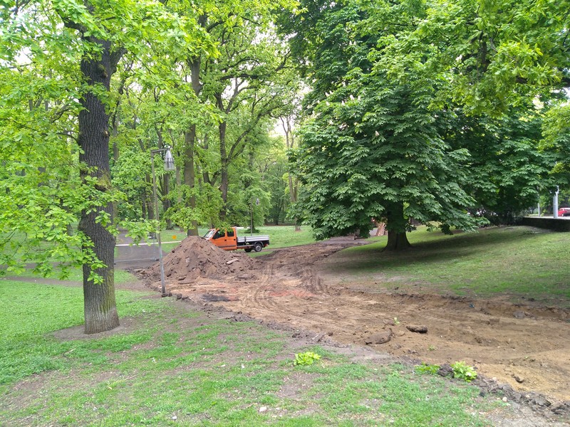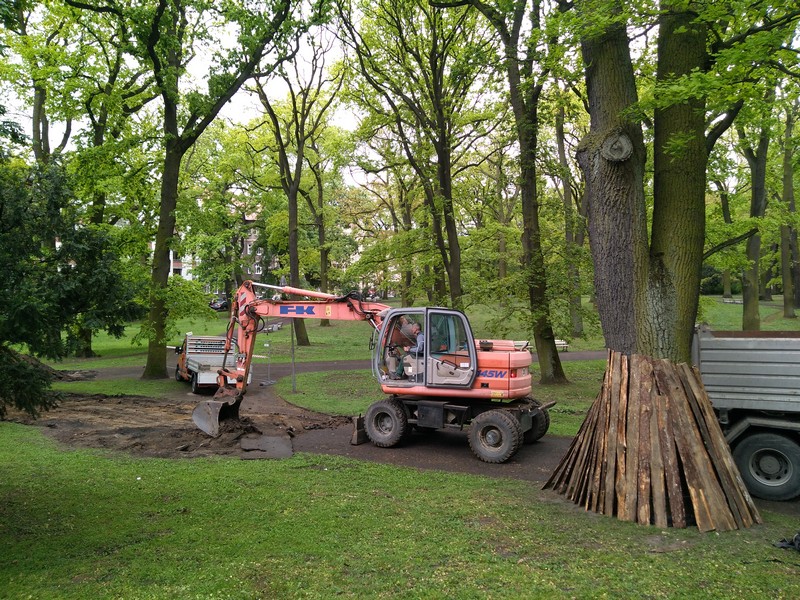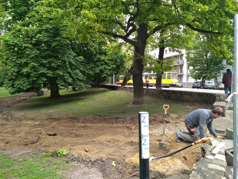 Obecnie trwają prace przygotowawcze: osłonięto drzewa, usunięto ławki oraz zerwano mocno sfatygowaną nawierzchnię. Położenie nowej, także w rejonie dojścia i przy pompie z herbem miasta, jak również montaż nowej architektury parkowej ma potrwać do 15 lipca 2019 r.
