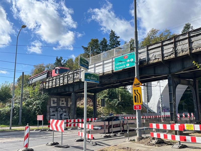 Od Bartosza Pietrzykowskiego z Zespołu Prasowego PKP Polskie Linie Kolejowe S.A. dowiedzieliśmy się, że roboty na ulicy Ku Słońcu, prowadzone w ramach budowy Szczecińskiej Kolei Metropolitalnej, obejmują swoim zakresem prace związane z dobudową drugiego wiaduktu kolejowego (pod nowy, drugi tor) i budowę dojść do peronów na nowym przystanku Szczecin-Cmentarz Centralny.