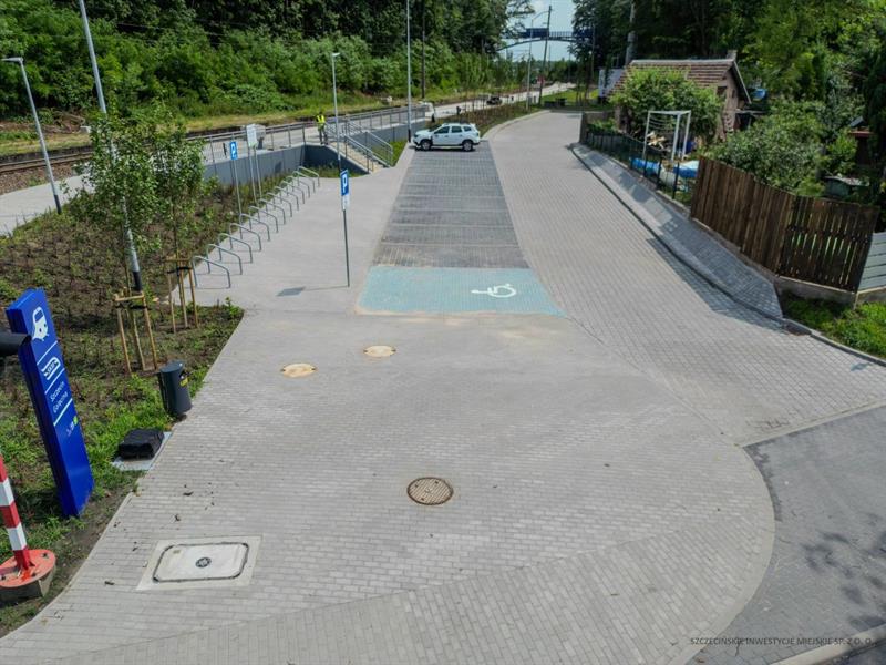 – Powstał parking wraz z jezdnią manewrową oraz infrastruktura dla pieszych, umożliwiająca dojście na perony kolejowe – wymienia Piotr Zieliński, rzecznik prasowy Miasta Szczecin ds. inwestycji. – Wybudowana została nowa zatoka autobusowa. W ramach zagospodarowania zainstalowano wiaty przystankowe, pylon informacyjny, tablice systemu informacji pasażerskiej oraz kosze na śmieci. Przebudowana została infrastruktura elektroenergetyczna, telekomunikacyjna oraz kanalizacja deszczowa i sieci gazowe. Zagospodarowana została także zieleń.