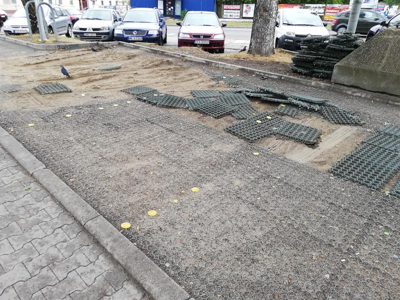Parking przed „Biedronką” na alei Piastów w Szczecinie bardziej przypomina wielką nieskończoną układankę niż miejsce do parkowania. Elementy stalowej kratki nawierzchni są rozrzucone po placu, co uniemożliwia parkowanie. Radzimy zarządcy terenu czym prędzej zająć się tym miejscem, nim jakiś samochód uszkodzi na przykład oponę. ©℗
