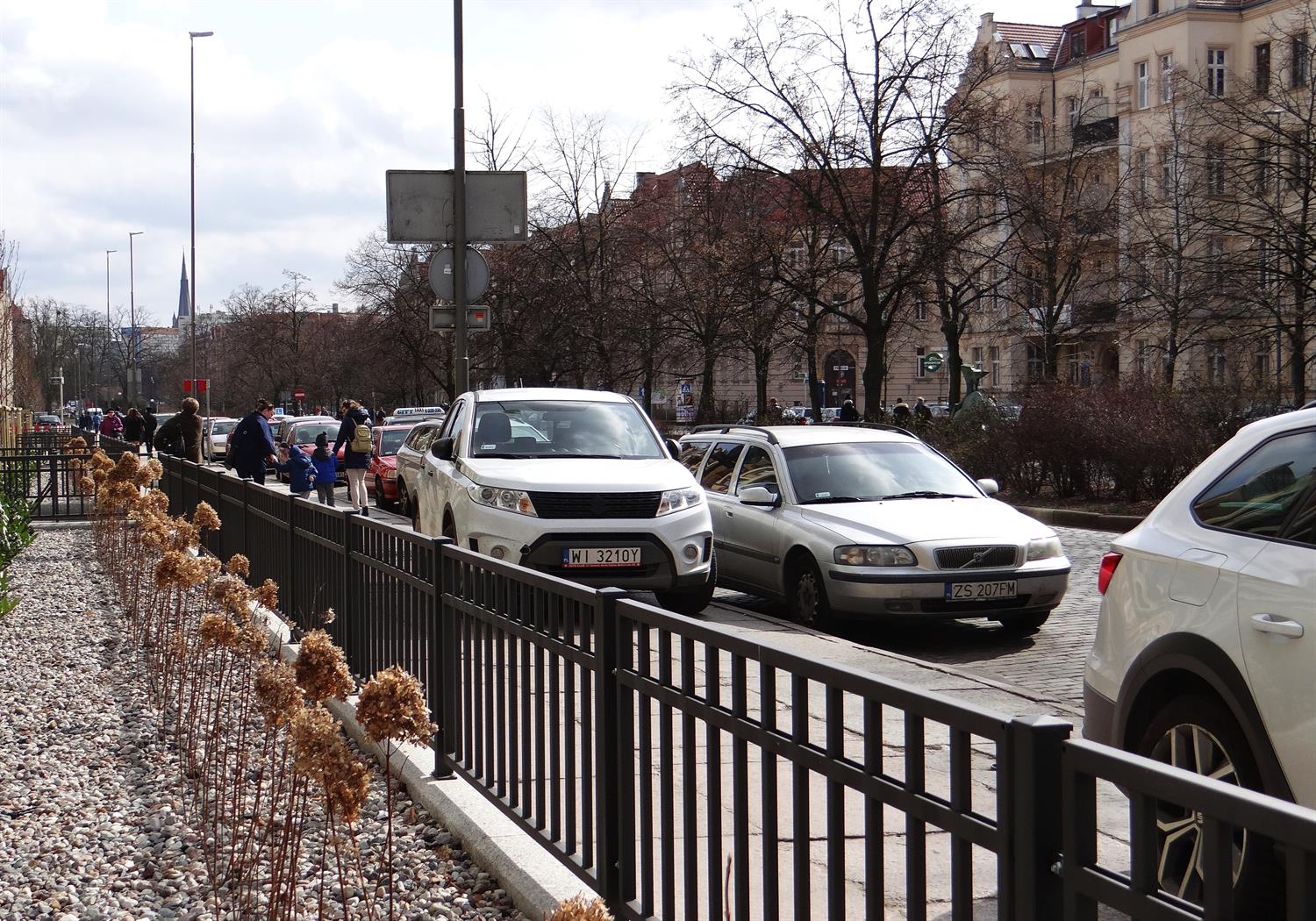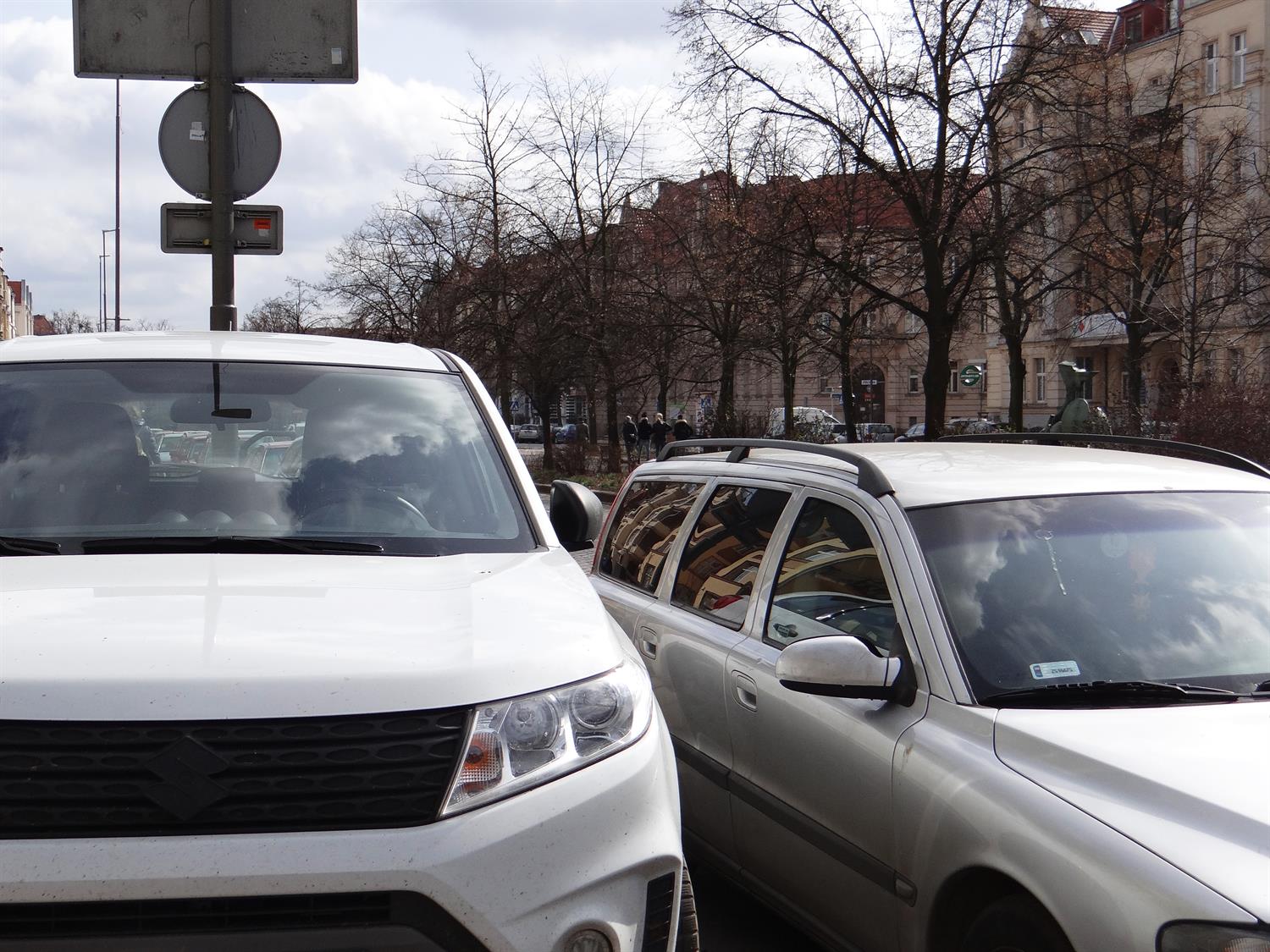 Jak złamać prawo i umknąć uwadze policji? Choćby tak, jak widać na zdjęciu: parkując auto na chodniku, na drugiego, trzeciego, tarasując przejście pieszym albo bramę wjazdową do kamienicy.
