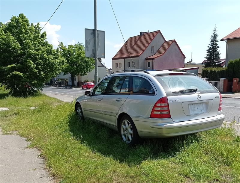 Kierowca zostawił Mercedesa opodal skrzyżowania ul. Unii Lubelskiej z ul. Litewską i ul. Klonowica. Na trawniku, choć akurat z tego miejsca musiał dobrze widzieć ogromny przyszpitalny parking. Czy dlatego samochód ukrył na widoku, bo był bez tablic rejestracyjnych? Faktycznie, przez wysoką trawę ten „szczegół" mógł umknąć uwadze straży miejskiej, akurat przejeżdżającej ulicą.