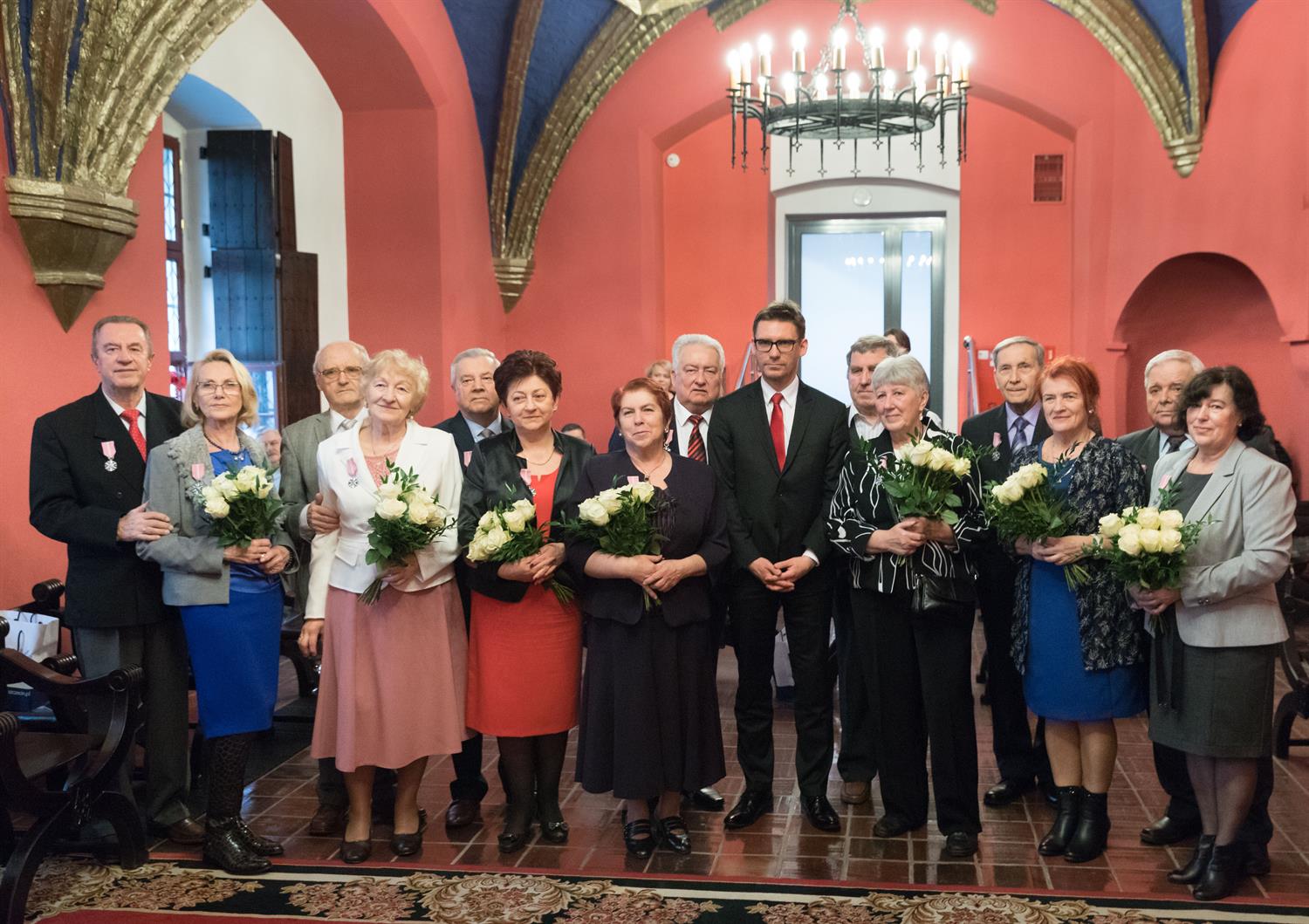 Na zdjęciu: Odznaczone pary z wiceprezydentem Szczecina Michałem Przepierą