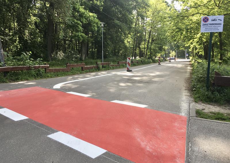Na drodze wewnętrznej przy dojeździe od ul. Arkońskiej w rejon kompleksu pobliskiej Arkonki i biegnącej wokół niego ścieżki rekreacyjnej kierowcy swoich samochodów już nie zaparkują. Zwykle to miejsce na wysokości położonej po drugiej stronie Polany Czerwonej służyło zmotoryzowanym za stałe postojowisko. Od kilku dni wytyczony już jest tam na całej długości odcinek pasa rowerowego.