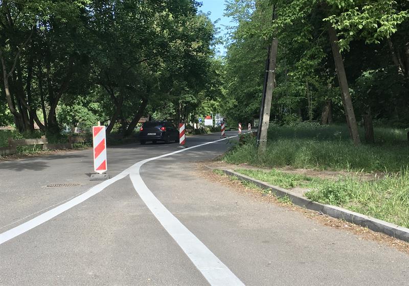 Na drodze wewnętrznej prowadzącej do Arkonki bez parkowania aut. Zamiast nich jest już tam wytyczony pas dla rowerów.