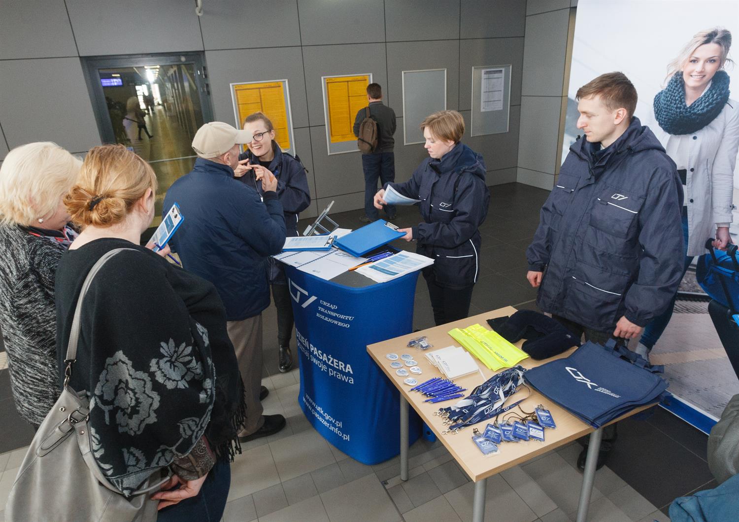 Z możliwości poznania praw pasażerów kolei skorzystało w godz. 12 - 16 sporo osób.