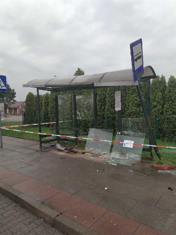 Na ul. Niepodległości w Stargardzie kompletnie zniszczona została wiata przystankowa. Kierowca wjechał w nią autem i uciekł.