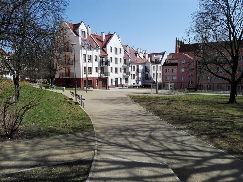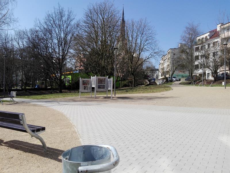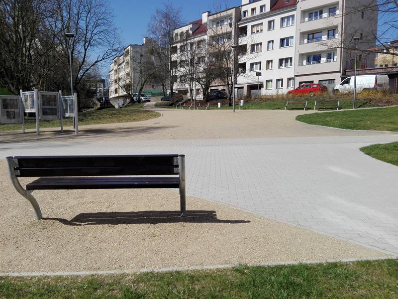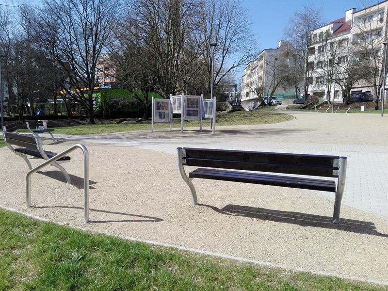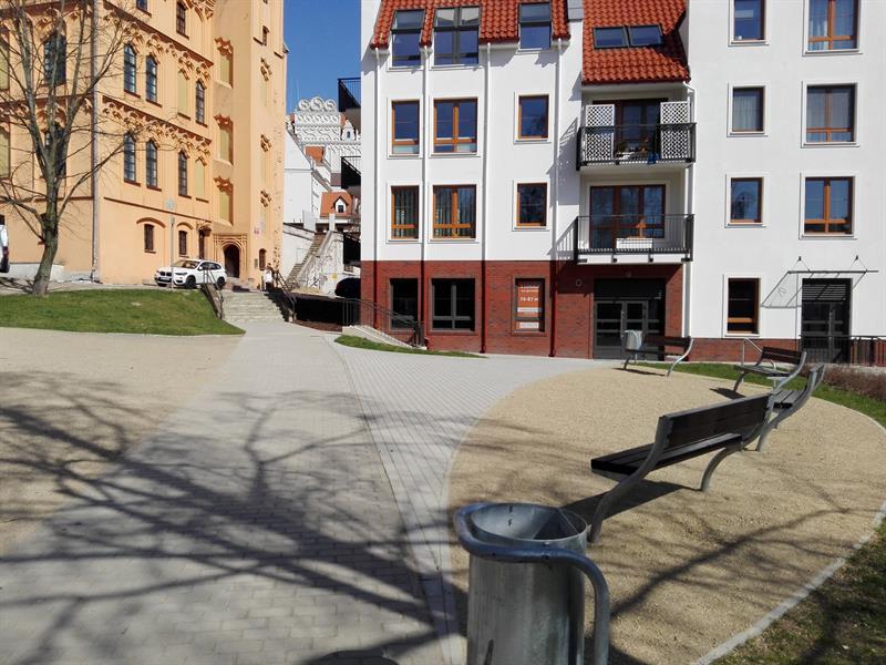 Ostatnia brzoza rzuca niewielki cień na jedną z ławek ustawionych na skwerze im. Guido Recka - w rejonie ul. Kurkowej, Szewskiej i Mściwoja II - na Starym Mieście.