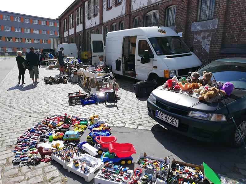 W kramach na zainteresowanych czeka mnóstwo porcelany, szkieł, kryształów, antyków i książek. Nie brakuje biżuterii, winyli, parasolek, słomianych kapeluszy, stylowych kreacji i innych kolorowych łaszków. Z morza zabawek da się wyłowić zarówno klocki i pluszowe misie, elektryczne kolejki, mniej i bardziej zaawansowane gry komputerowe oraz konsole, ale też repliki wojennych hełmów, egzemplarze broni białej i hukowych granatów.
