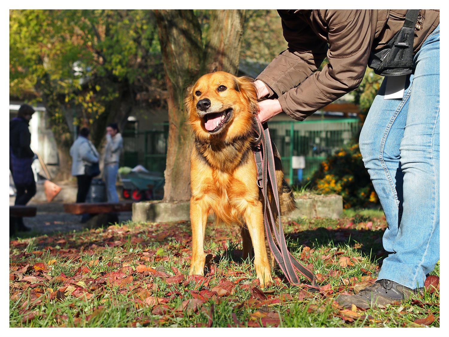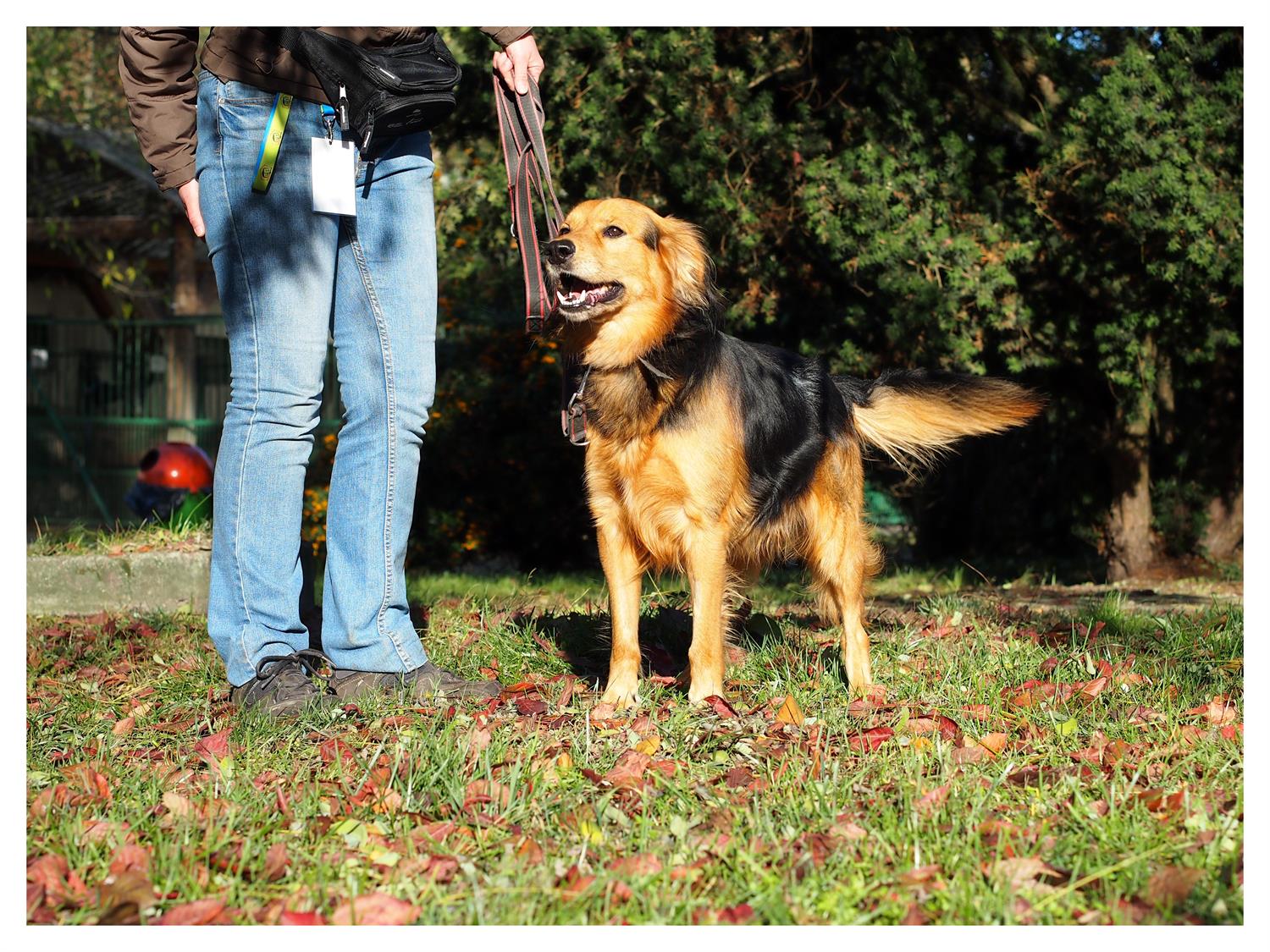 Źle znosi zamknięcie w schroniskowym boksie. Dlatego, gdy nadchodzi czas spaceru głośno się tym chwali światu: skacząc i szczekając. Smycz ciągnie tylko na początku. Gdy emocje opadną, świetnie współpracuje z opiekunem. Chętnie się z nim bawi. Wobec innych psów jest przyjazny. Wobec kotów... zalecana daleko idąca ostrożność.